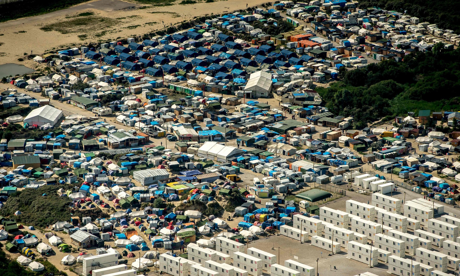 9000 refugees and growing trying to get to the UK on a tiny plot of land in Calais, France, a short ferry/tunnel ride to the UK, infested with rats, toxic from pesticides and asbestos, with shit and piss overflowing from porta-potties, tightly controlled by the French national police who routinely tear gas, steal food, and destroy refugee tents.
